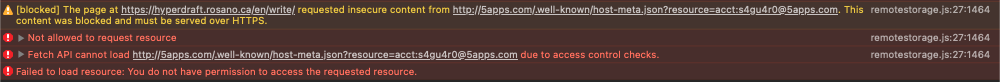 @S4GU4R0 seems like your account is ‘not found’ when using WebFinger (here’s a sample account), maybe there’s a typo or case-sensitive issue? I have found browser console errors to be misleading and try to start elsewhere.